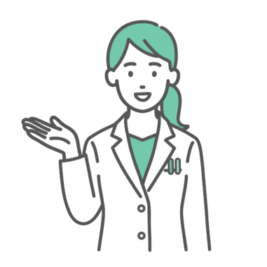 医師 指差し・解説をするスクラブ姿の女性医療従事者のイラスト(上半身)