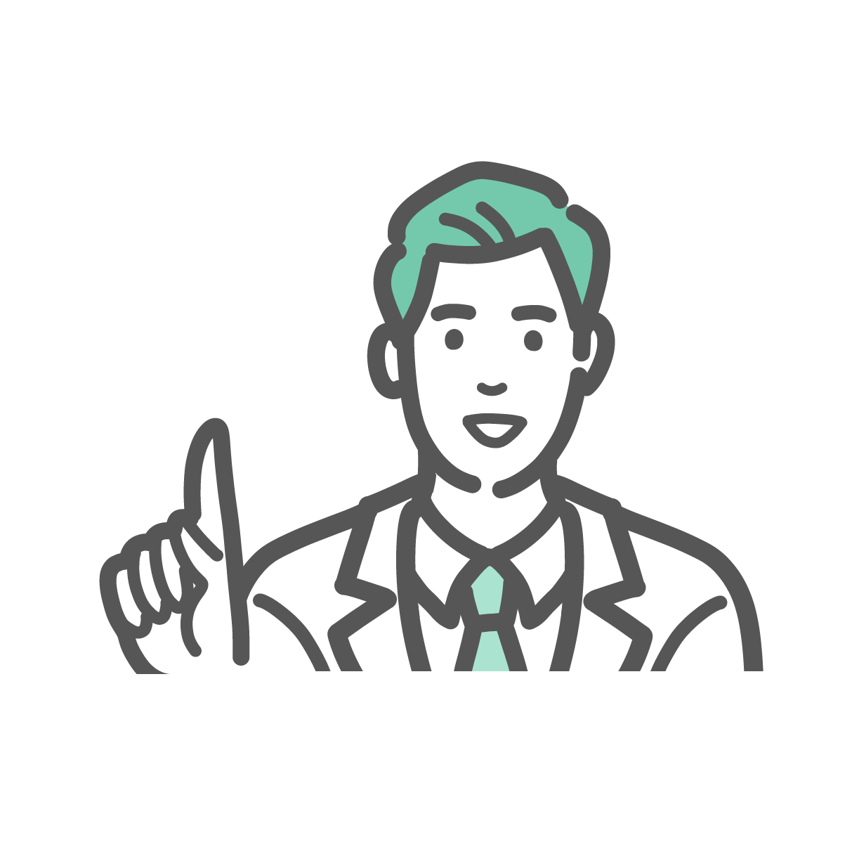 人差し指を立てて注意点や重要事項を伝える白衣の男性のイラスト