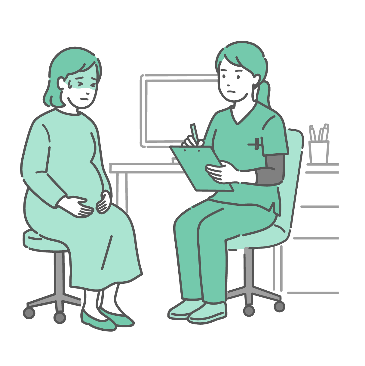 問診と体調不良の妊婦セット(女性医師・助産師・スクラブ)