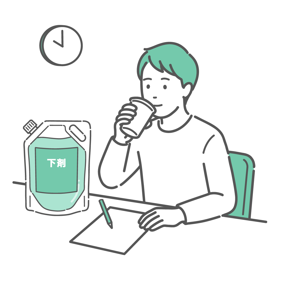 検査・測定 大腸カメラの前処置で下剤を余裕で飲む男性