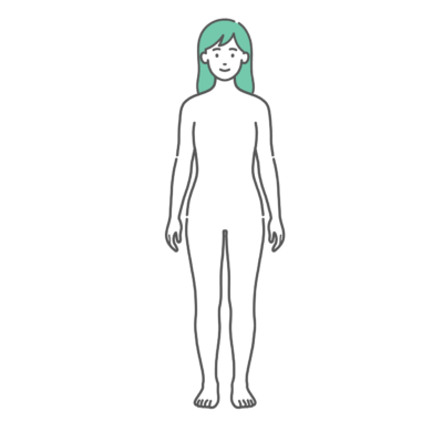 上半身・体幹 表面・内臓・骨格がわかる女性の人体図・全身モデルのイラストセット(正面)