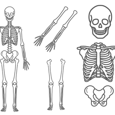 上半身・体幹 骨格・スケルトンのパーツイラストセット(全身・頭蓋骨・肋骨・骨盤・四肢・線画)