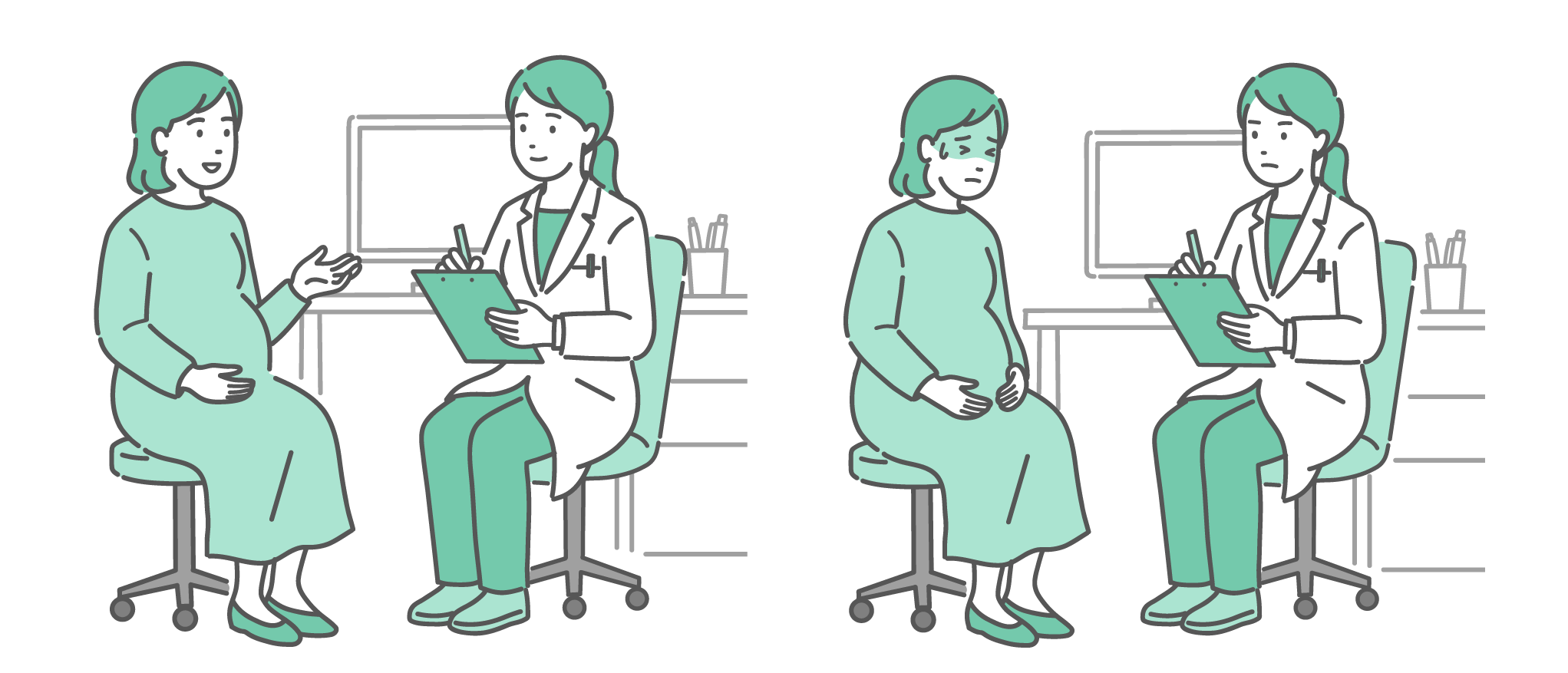 女性の健康・更年期 問診・診察の様子セット(妊婦と女性医師)